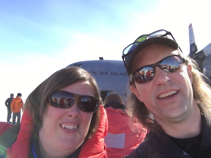 Kelly and Tom on the ice runway at McMurdo Station, Antarctica (Credit: Neumann)