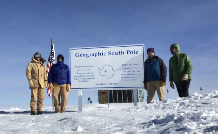 After a few extra days in the seaside town of McMurdo Station, we flew on a ski-equipped LC-130 for the sunny environs of South Pole Station, where we had a flawless touchdown on the groomed skiway next to the station. This is our last stop before embarking on the traverse in about a week. Our main objective here is to prepare our vehicles and sleds for travel, and take some cool pictures.