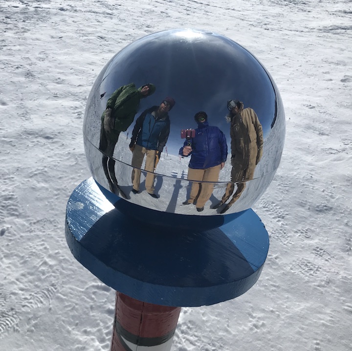 The perhaps more familiar scene is from the ceremonial south pole – a post with barbershop stripes and a reflective ball on top, surrounded by the flags of nations signing the original Antarctic treaty. The two poles are a few hundred yards apart and are both worth a visit if you find yourself down this way. Tell ‘em Tom sent you.