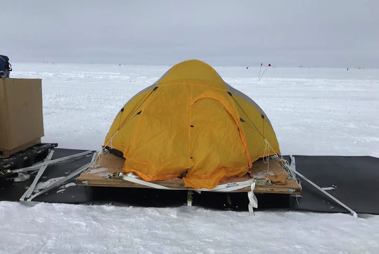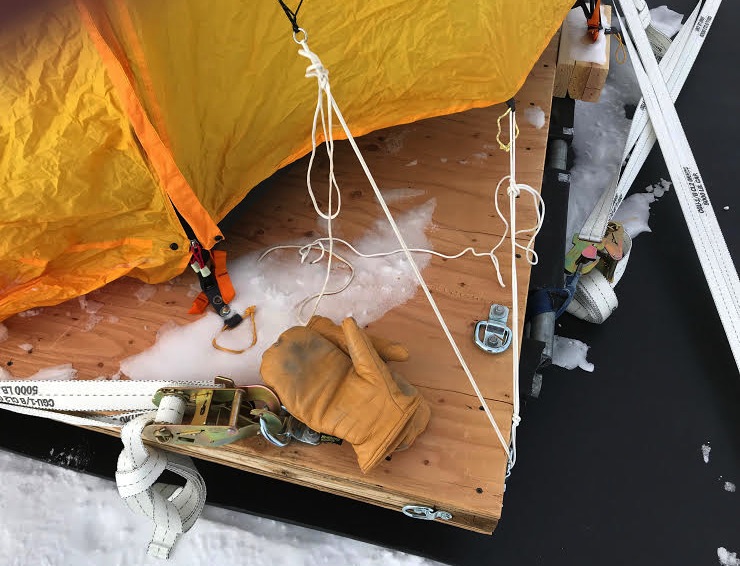 The pallets provide a surface area of about 8 ft by 8 ft, so we are making the most of these small spaces. Our sleeping tents (which are just run-of-the-mill mountaineering tents) barely fit on these platforms!