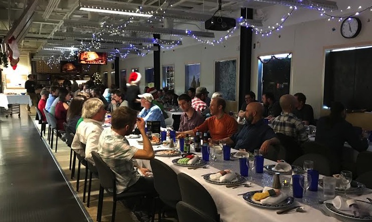 And finally, despite our best efforts, we have been slightly delayed in getting into the field. But that meant that we were able to spend Christmas here at Pole, as opposed to huddled together in our small kitchen tent, out on traverse. The station went out of its way to make folks feel warm and festive, even though we are all ~10,000 miles from home. The galley was done up special for the event and the food was simply fantastic.