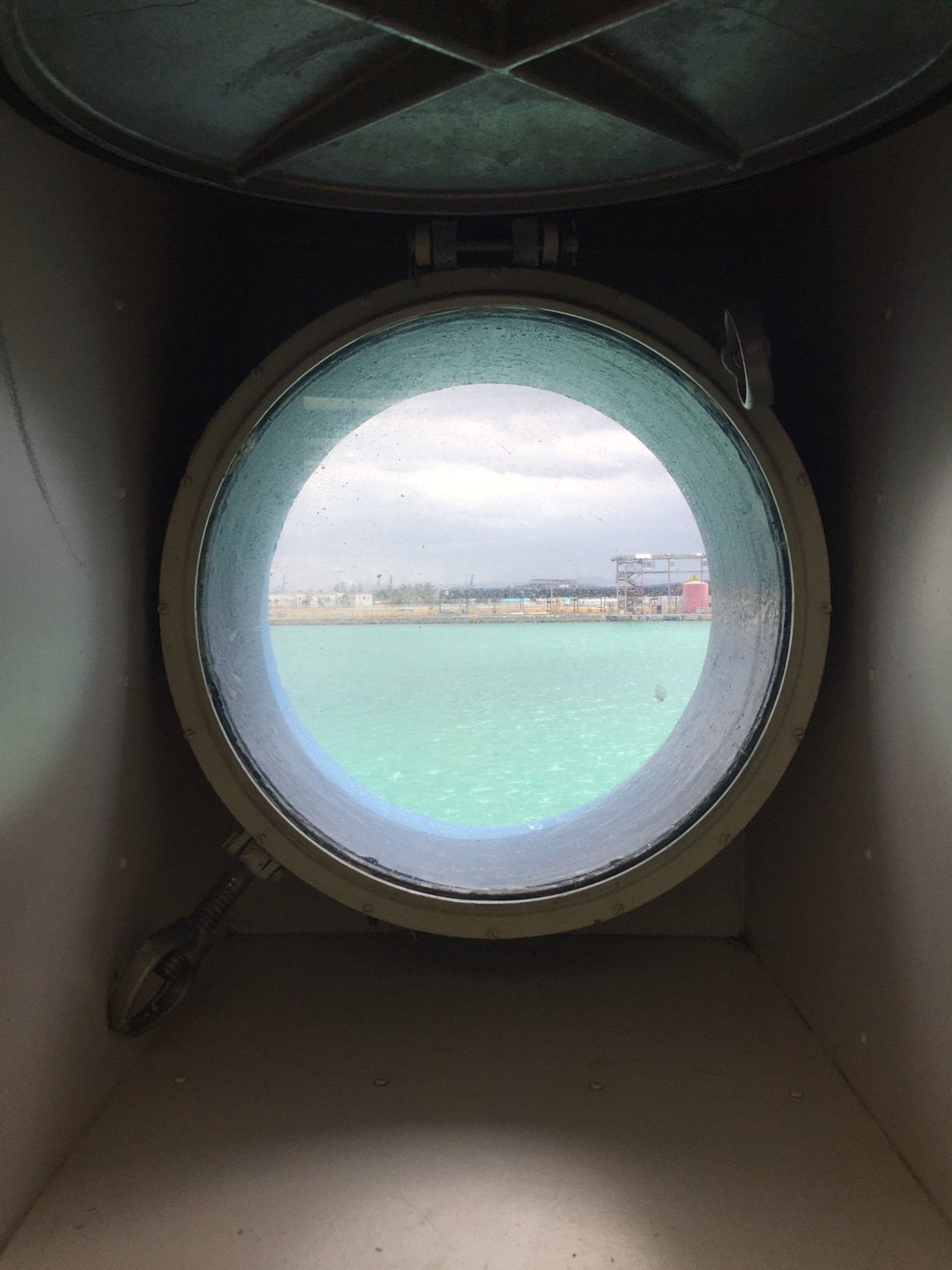 With Puerto Rico fading into the background, we watched the water color change from the bright, milky turquoise (filled with the occasional reef fish or even an octopus darting under the ship last night!) of the inland lagoon to a deep azure dotted with whitecaps. As a member of the Optics Team onboard NAAMES 4, my lab mate James Allen and I are always interested in characterizing the color and brightness of the ocean to tell us more about what is in the water. When we get on station in a few days, we will use a number of different sensors to tell us about the light hitting the surface of the ocean and how that light is absorbed and scattered by water and other things as it travels to depth. We have sensors mounted on the ship to measure the light coming from the sun, and we will send other instruments down into the water to describe the concentration of phytoplankton and other particles.