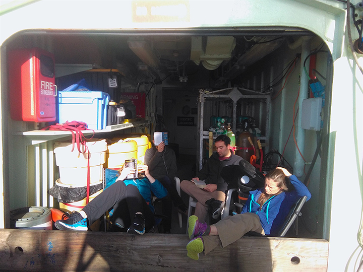 Watching sea creatures (from micro to macro): this activity includes all sizes of creatures. We can spend hours watching the pictures of microorganisms retrieved from the Inline Flow Cytobot. As you can imagine, we always are paying attention to the ocean and trying to spot whales, dolphins, birds and any other creature that decides to show up and say hi to us.