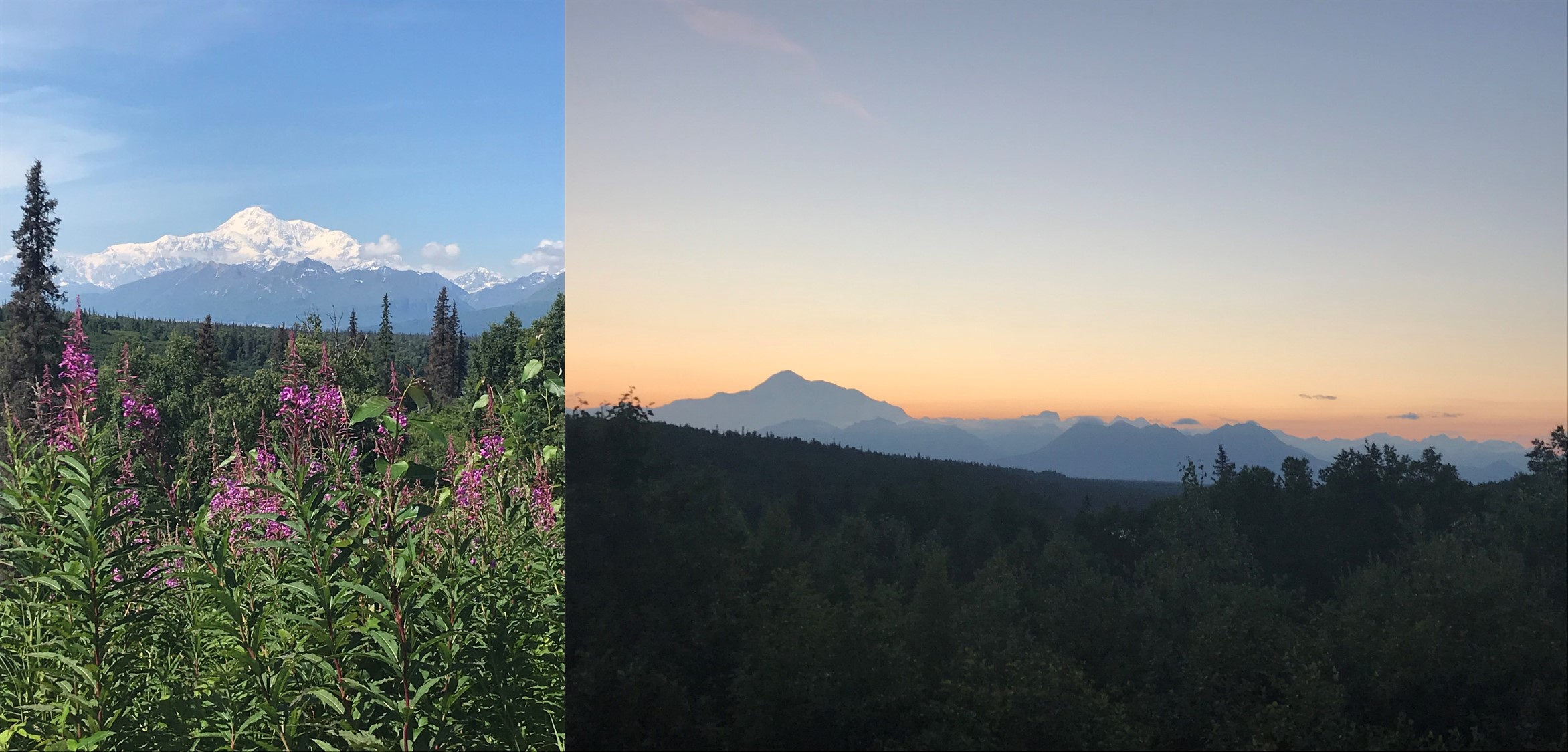 Fieldwork in Alaska also has the major perk of spectacular views during afternoon and evening breaks. After a particularly long day of sampling in Denali State Park, we opted to stay in the area rather than drive the long three hours back down to Anchorage and were blessed with a beautiful view of “sunset” over the Alaska Range.