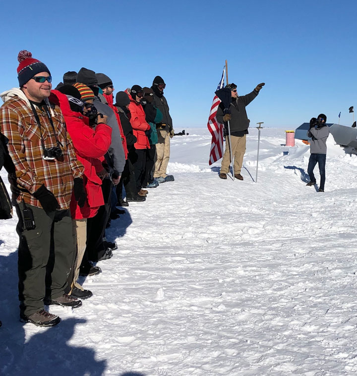 Besides the moon, our other constant companion is the wind. Most days there is anything from a fresh breeze to stiff wind, up to 35 mph (56 kph). Though the air temperature is in the teens (-5 C), the wind cuts through all but the warmest clothing. We are walking upwards of 1.25 miles (2 km) a day in this wind. The walk is another time for community, or at least commiseration, and it is also a time to enjoy the austere beauty of the landscape, the aurora, the moonlight on the water, and even the intense beam of the research LIDAR used here to study the atmosphere, flaring into the sky like a pillar of green flame.
