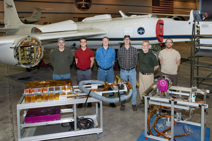 Let me back up. For the past two and a half years, my team from NASA, NIST, USGS, UMBC/JCET and the University of Guelph have been designing and building an instrument to take accurate measurements of the Moon to improve Earth observing sensors. After many long days, late nights, coffees, and a couple of successful test flights last year, we finally got to see our instrument, called air-LUSI, demonstrate its capabilities aboard an ER-2 airplane out of NASA’s Armstrong Flight Research Center (AFRC) in Palmdale, California. Our two-hour night flights started late November 12 and will wrap up on November 17 at around 2 a.m. in the morning.