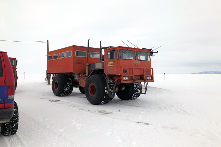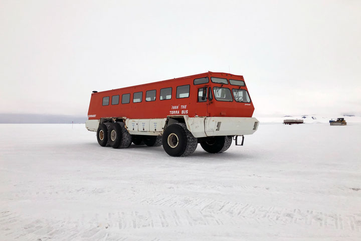 When our schedules are a little more consistent, we get a ride from the United States Antarctic Program Shuttles Operations team for our daily commute. The Shuttle Ops team has a few different vehicles they use for our daily transport, but the most iconic is “Ivan the Terra Bus.” Ivan was also made by the same company that continues to provide the DELTAs.