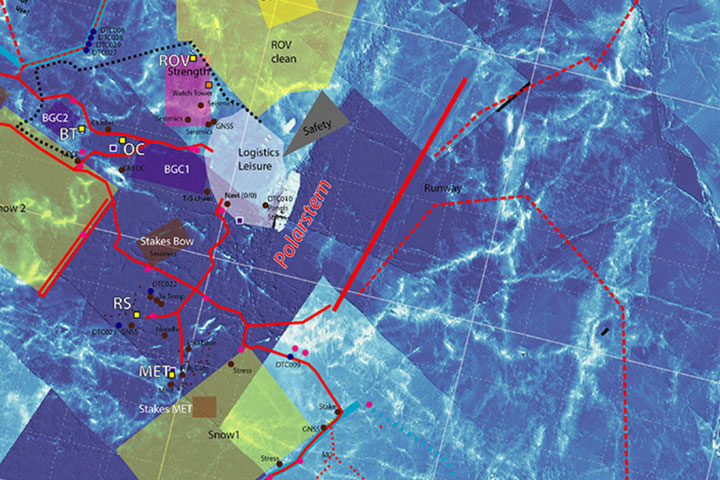 Throughout the CO, there are carefully placed roads that lead from Polarstern through the Logistics area (where snowmobiles and other gear are parked) and to the different cities. Perhaps most importantly, there is also a ‘trip wire’ alarm around the CO that is able to send up a signal flare if a polar bear walks into it, providing an additional safety measure when out on the ice.