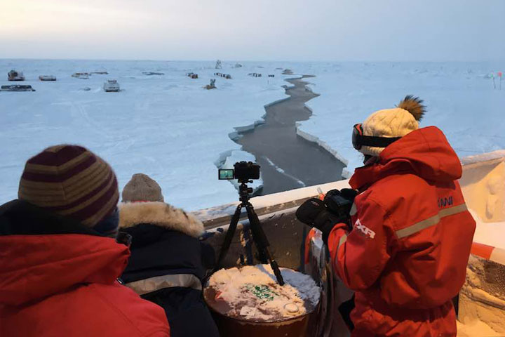A few days ago, a small crack formed near the ship that was just a few inches wide when it was first noticed. We were still able to go out on the ice, but it was being monitored closely. About an hour later, everyone out on the ice got a radio call from the ship that it was time to return. The crack had grown to a few meters wide, and ran directly under the ship and out in both directions. It continued to widen for a few hours, but luckily this first crack didn’t form under any installations or sensitive instruments. This lead, however, was just the start.