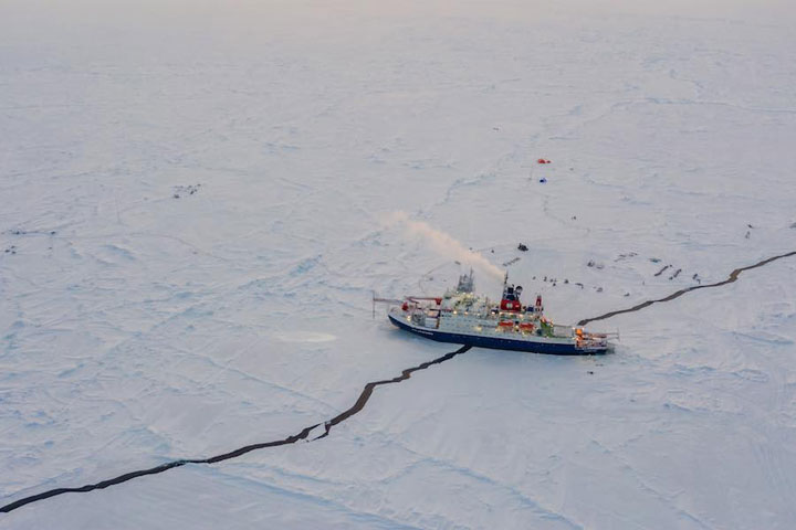 A few days ago, a small crack formed near the ship that was just a few inches wide when it was first noticed. We were still able to go out on the ice, but it was being monitored closely. About an hour later, everyone out on the ice got a radio call from the ship that it was time to return. The crack had grown to a few meters wide, and ran directly under the ship and out in both directions. It continued to widen for a few hours, but luckily this first crack didn’t form under any installations or sensitive instruments. This lead, however, was just the start.