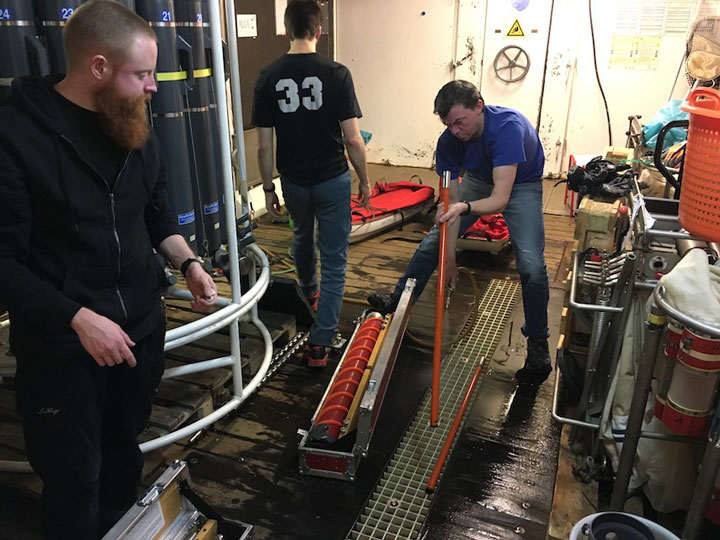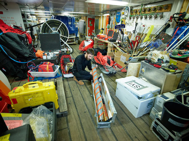 17:30: We arrive back to the ship to unpack all of the gear and distribute the ice cores to the various teams.