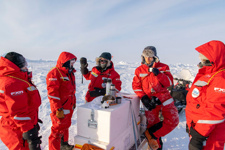 07:30: Breakfast time. The whole team generally eats right away in the morning, and makes sure to have enough for the long day in the field. We also pack some food to eat for lunch out on the ice.