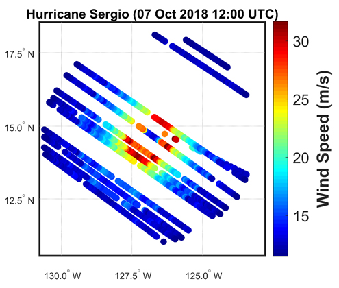 Our ability to forecast the strengthening of hurricanes has been improved by CYGNSS measurements of their inner core winds, which allow us to track the transfer of energy from the warm ocean water into the atmosphere in the form of latent heat flux. Currently, CYGNSS data are being used in re-analysis investigations; that is, revisiting old hurricane forecasts with new CYGNSS data added to see how the predictions are improved. Eventually, the goal is to use the data directly in operational forecasting by NOAA’s National Hurricane Center. CYGNSS wind observations can also be used to provide better estimates of the location of the hurricane, as reported in 2019 in the Journal of Applied Meteorology and Climatology.