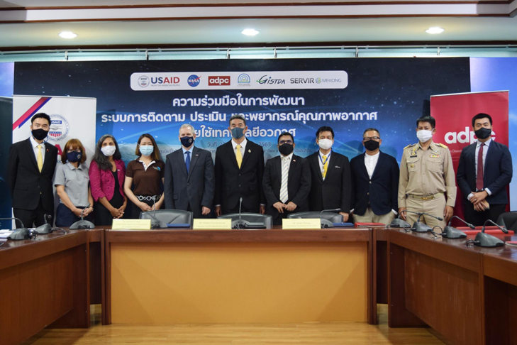 The press event took place at the Ministry of Natural Resources and Environment in Bangkok, and included remarks, a tool demo, and a Q&A session—and I got to watch it all live online. With about 40 participants, the event featured speakers such as: Mr. Athapol Charoenshunsa, PCD Director General and Chairman of the event; Dr. Steven G. Olive, Mission Director of USAID’s Regional Development Mission for Asia (RDMA); Dr. Lawrence Friedl, Director of NASA Earth Science Division’s Applied Science Program (through a pre-recorded video); and Mr. Aslam Perwaiz, Deputy Executive Director of the Asian Disaster Preparedness Center (ADPC). Additionally, GISTDA, the National Research Council of Thailand, the Prime Minister’s Delivery Unit, the Thai Health Promotion Foundation, the Department of Health, and about 20 local media channels and newspapers were at the event.