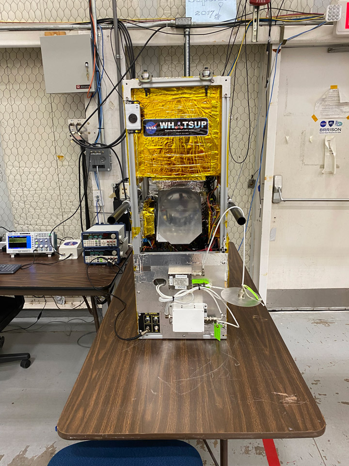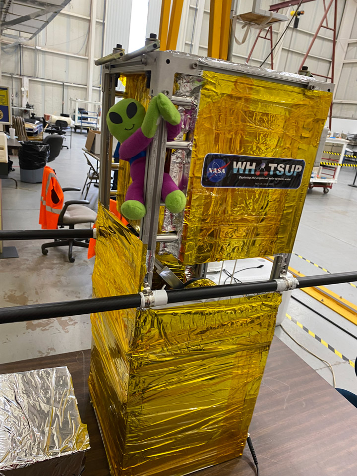 So far, the team has conducted one hand-launch for the NASA Jet Propulsion Laboratory (JPL) science mission WHATSUP. Now, I’ve talked about hand launches in previous blog posts (“More Fun Than a BARREL of Electrons” primarily), but what makes this mission special is that the Principal Investigator, Adrian Tang, is developing a system to go to other planets and measure water content in their atmospheres. That’ll help us understand the composition of gases that make up the “air” on said planets in our solar system. You can see some shots of the WHATSUP mission in the above pictures. The image below is from the launch last week.