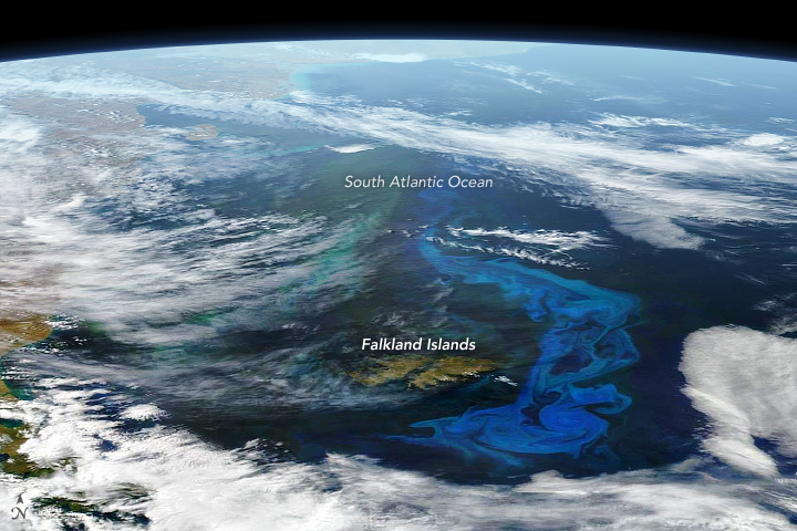 Phytoplankton grow constantly on Earth and just about anywhere there are open, sunlit patches of water. When conditions are right, the growth of these microscopic cells can blossom to scales that are visible from orbit for days to weeks.