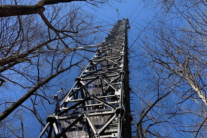 On a blustery March morning, Petya Campbell stood atop a 204-foot-tall tower and looked across the waving canopy of the leafless deciduous forest at the Smithsonian Environmental Research Center in Edgewater, Maryland. This forest is predominately tulip poplar (Liriodendron tulipifera), and the tower extends over trees that are over 120 feet tall.