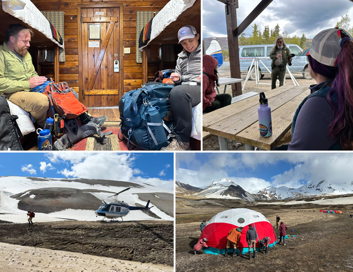 The journey from Anchorage to our base camp near Knife Creek included flights on tiny aircraft, “Bear School,” a school bus equipped to ford rivers, and a sixteen-mile hike complete with more water crossings and high winds. On day two in the field, a helicopter carrying large items, such as heavy science gear and a group water filter, reached the valley. In case weather prevented the airdrop, we were ready to complete some key tasks using just what we carried on our backs, but we were glad to see the equipment arrive.