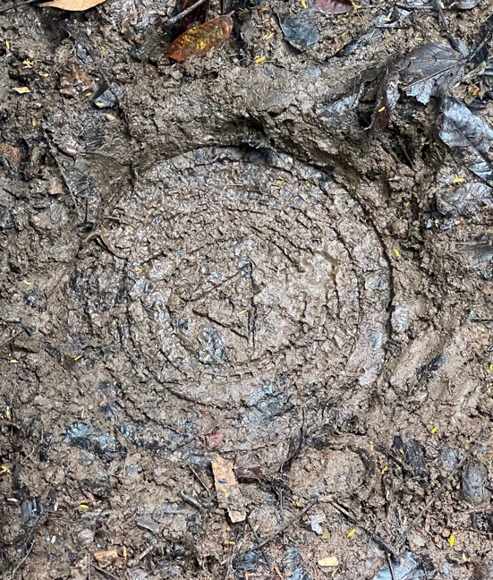 While we were at Barro Colorado, we participated in a NASA Jet Propulsion Laboaratory (JPL) project. Artists at the lab create disks with the name of a field location in Morse code. When a JPLer is at a field location, they press the disk into the ground, and it creates a transient memorial, which we can photograph as part of a collection. Erika and I found a muddy spot by a stream where the soil was soft enough to take the impression and then had to decode the Morse to tell the Barro Colorado disk from a Panama City disk. We pressed it in and took photos, linking BCI, STRI, and JPL in Panama through our collaboration.