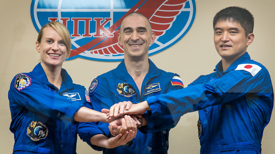 At the Baikonur Cosmodrome in Kazakhstan, NASA astronaut Kate Rubins, cosmonaut Anatoly Ivanishin of the Russian space agency Roscosmos, and astronaut Takuya Onishi of the Japan Aerospace Exploration Agency (JAXA) are preparing for launch to the International Space Station. They are scheduled to lift off in a Soyuz spacecraft today at 9:36 p.m. EDT (7:36 …