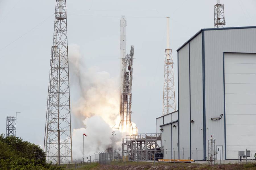 Dragon is on the way to the International Space Station! The nine engines on the Falcon 9’s first stage ignited on time to lift the rocket and spacecraft off the ground. It will take about nine minutes for Dragon to reach orbit.