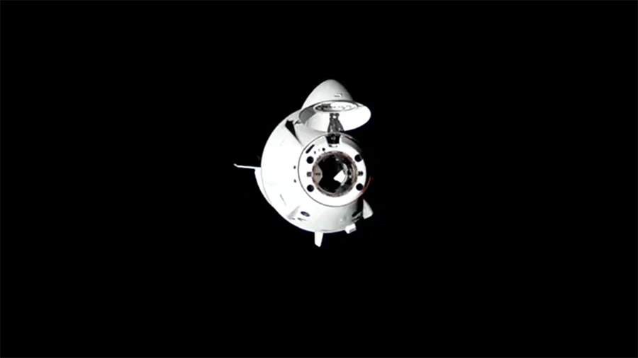 The Dragon spacecraft has separated from the Falcon 9’s second stage and is flying on its own. The spacecraft is traveling at approximately 17,500 miles per hour (28,200 kilometers per hour). In less than a minute, the Dragon crew spacecraft nosecone open sequence will begin.