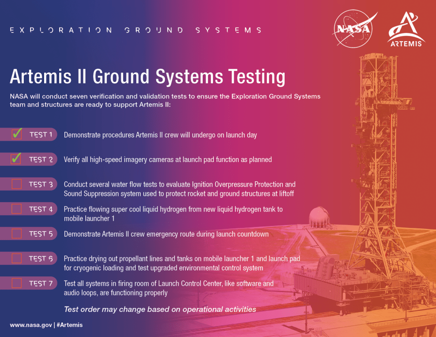 Teams with NASA’s Exploration Ground Systems Program have completed the next series of integrated ground systems testing at the agency’s Kennedy Space Center in Florida. On Jan. 25, the high-speed film and high-speed digital cameras on the mobile launcher and Launch Pad 39B were successfully tested at the spaceport ahead of the Artemis II mission. …
