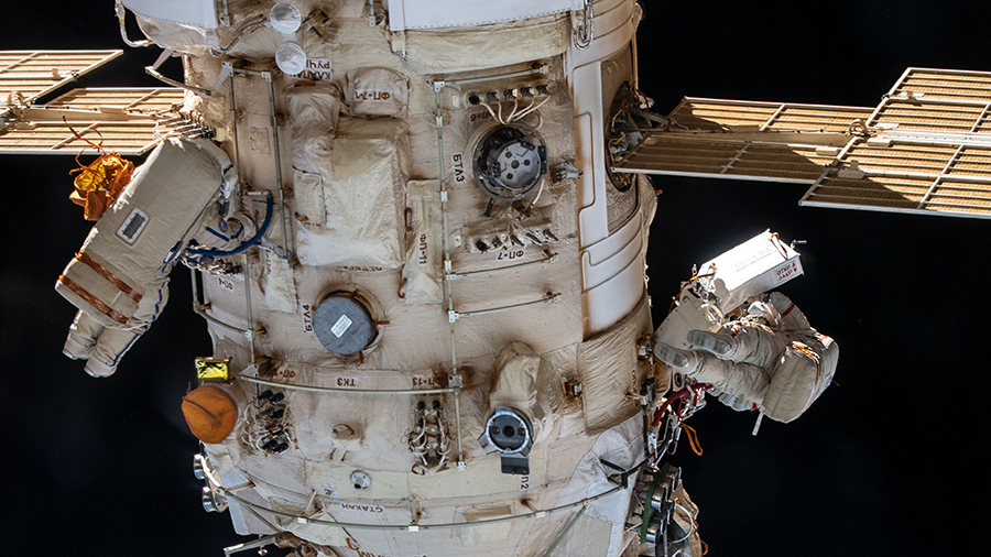 Spacewalkers Exit Station to Activate New Robotic Arm