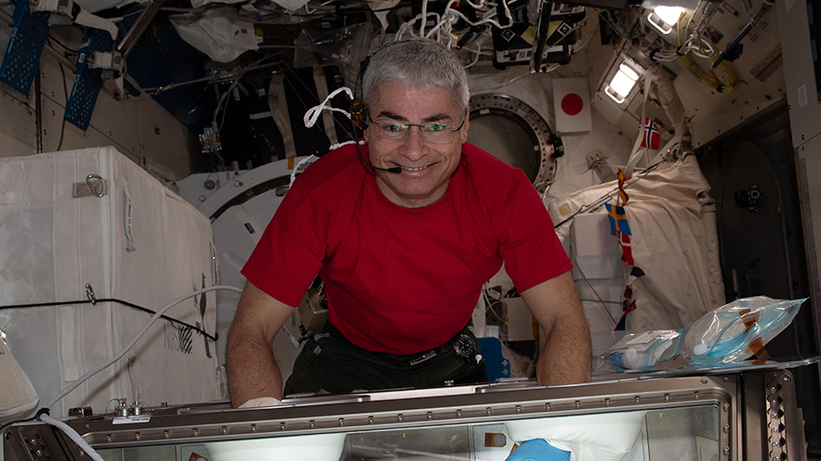 Payloads Eklosion: The crew participated in an Eklosion experiment session by observing the flower, taking photos, and reading some of the messages included with the experiment. They also gently shook the capsule to determine the quantity of water remaining. The Eklosion investigation utilizes a vase, inspired by the VEGGIE plant growth facility, specially designed for …
