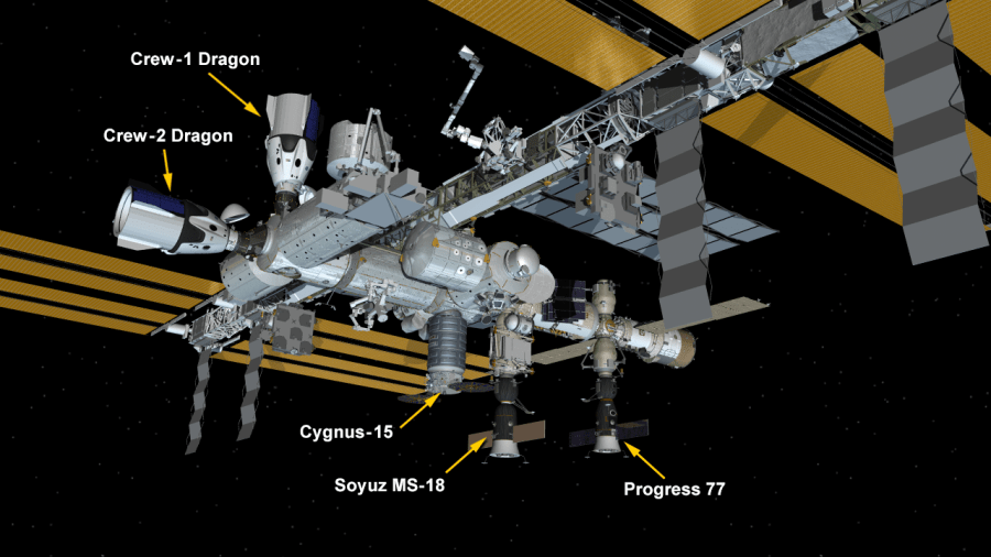 The SpaceX Crew Dragon Resilience spacecraft with astronauts Michael Hopkins, Victor Glover, and Shannon Walker of NASA, and Soichi Noguchi of the Japan Aerospace Exploration Agency (JAXA) inside undocked from the space-facing port of the International Space Station’s Harmony module at 8:35 p.m. EDT to complete a six-month science mission. Two very small engine burns separated Crew Dragon from the station, and the spacecraft is slowly maneuvering away from the orbital …