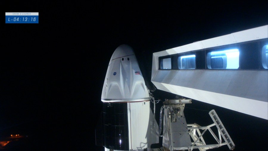 The crew access arm has retracted. A few minutes later Crew Dragon’s launch escape system will be armed. From liftoff until they reach orbit, roughly 12 minutes, the crew would be able to escape safely in the unlikely event of an anomaly. Up next is propellant loading.