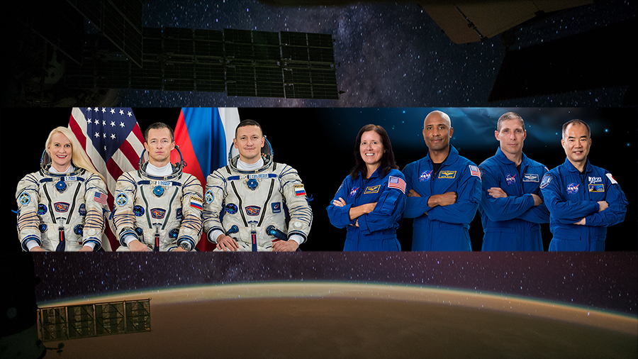 The expanded seven-member Expedition 64 crew with (from left) Flight Engineers Kate Rubins, Victor Glover and Soichi Noguchi, Commander Sergey Ryzhikov and Flight Engineers Michael Hopkins, Shannon Walker and Sergey Kud-Sverchkov. NASA astronauts Michael Hopkins, Victor Glover, Shannon Walker, and Japan Aerospace Exploration Agency (JAXA) astronaut Soichi Noguchi aboard the SpaceX Crew Dragon have arrived at the International Space Station. Crew-1 …
