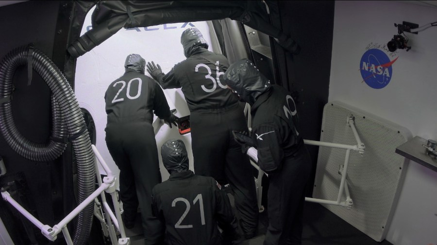 The hatch is now closed on the Crew Dragon spacecraft, named Resilience by the Crew-1 astronauts. Liftoff for Mike Hopkins, Victor Glover, Shannon Walker, and Soichi Noguchi is approximately 90 minutes away (7:27 p.m. EST). The hatch was briefly reopened after a slight drop in pressure was noted. Troubleshooting around the hatch seal led to …