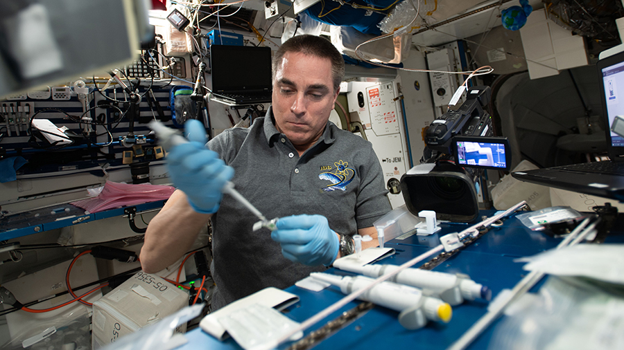 Advanced space physics and biotechnology research kicked off the week for the Expedition 63 trio aboard the International Space Station. Commander Chris Cassidy of NASA started Monday operating a variety of science experiments that observe different microgravity phenomena. He continued researching water droplets in the U.S. Destiny laboratory module to promote water conservation and improve …