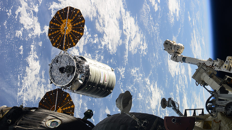 Astronaut Commands Robotic Arm to Capture Cygnus Cargo Craft