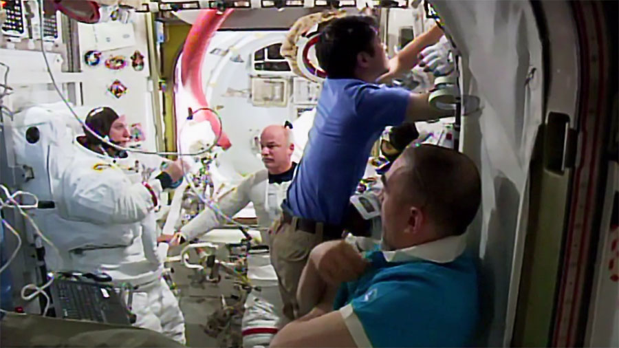 Fluid Shifts Operations in the Service Module: With ground team assistance, crewmembers continued Fluid Shifts Imaging exams by conducting the Optical Coherence Tomography (OCT) exam, Ultrasound scans, the Distortion Product Otoacoustic Emission (DPOAE) tests, and a Tonometry exam. This investigation characterizes the space flight-induced fluid shift, including intra- and extravascular shifts, intra- and extracellular shifts, …