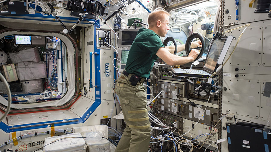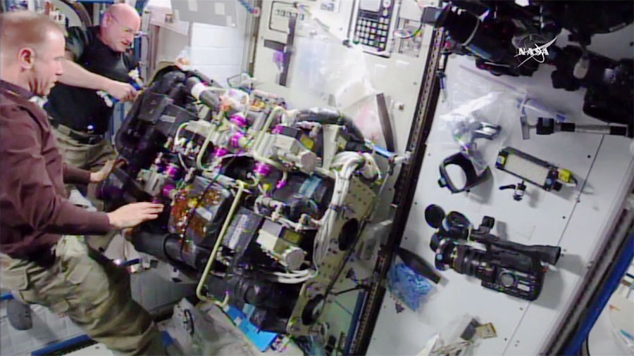 Electrostatic Levitation Furnace (ELF) Troubleshooting: Peake successfully performed troubleshooting steps for the accessibility issue that has prevented mating of a hose between the Japan Aerospace Exploration Agency (JAXA) ELF and the Moderate Temperature Loop (MTL) for cooling. He connected the cooling water hose between the MTL connection on the MSPR2 and the ELF. The ELF …