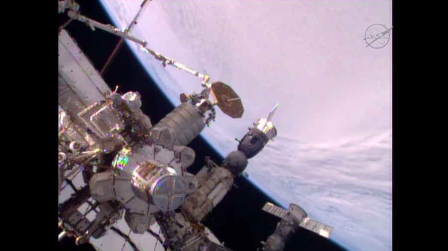 Crew Enters Soyuz and Closes Hatch Before Undocking