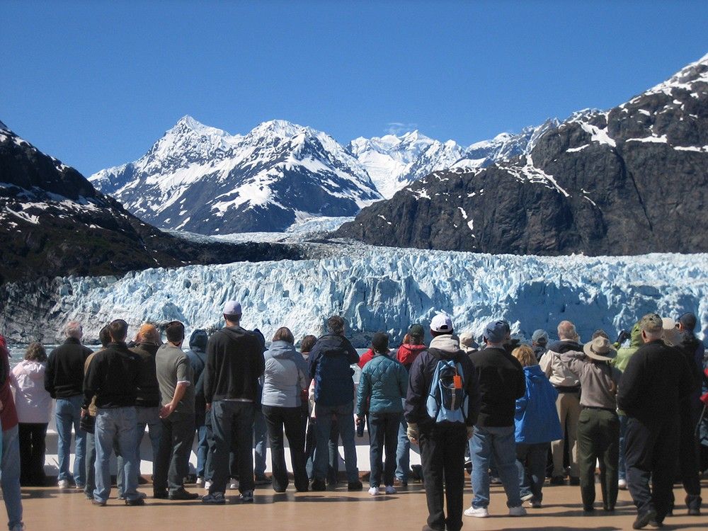 A landmass that was once encased in the ice of the Alsek Glacier is now surrounded by water.