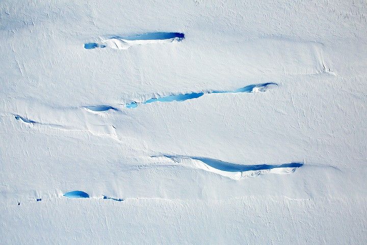 A network of meltwater lakes and drainage channels made an Antarctic ice shelf known for its blue ice areas even…