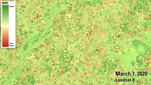 In much of the U.S., spring began unusually early in 2020. These images compare an area near the border of…