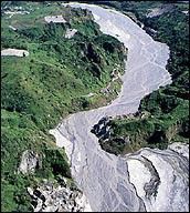 The landslide struck a section of the Canadian river between Whitehorse and Lake Laberge and left a heap of debris…