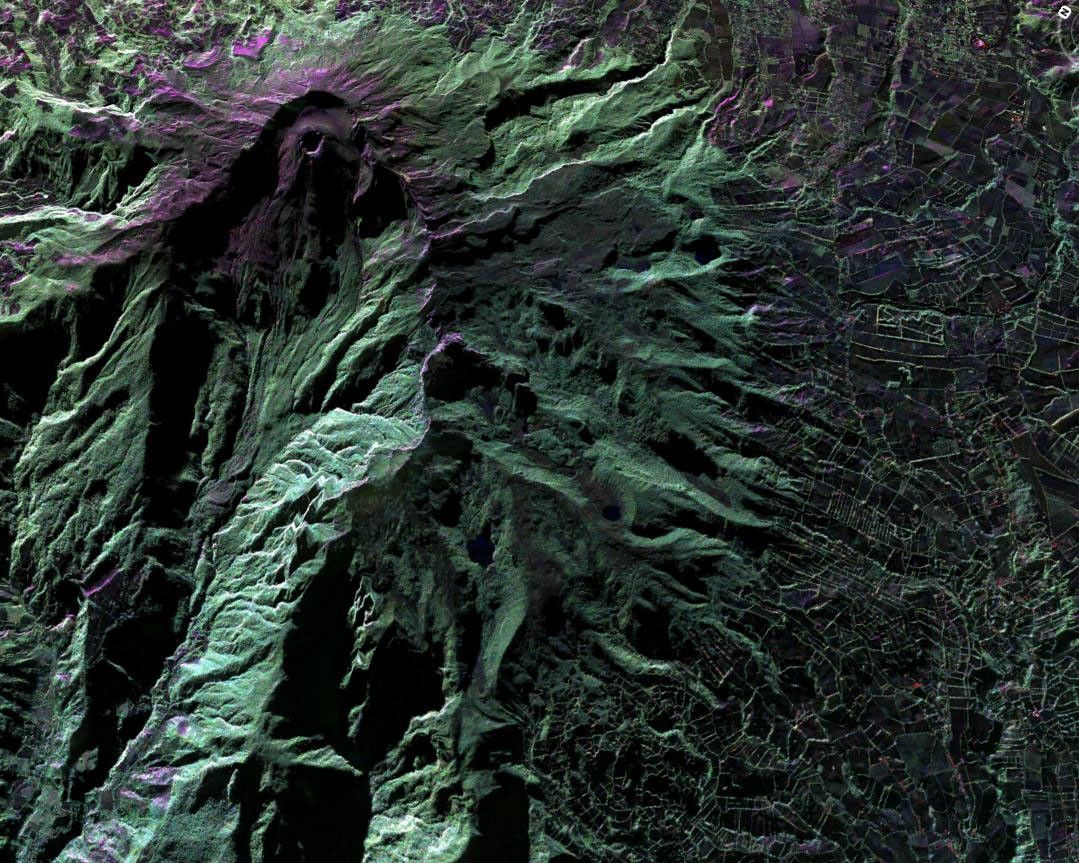 This false-color image of Colombia's Galeras Volcano, was acquired by UAVSAR on March 13, 2013. A highly active volcano, Galeras…