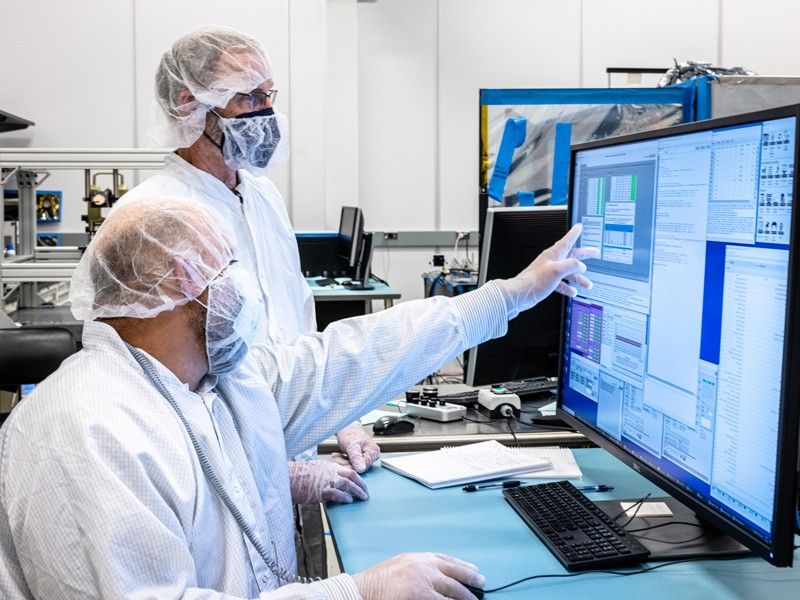 Technicians inside the Payload Hazardous Servicing Facility at NASA’s Kennedy Space Center in Florida monitor movement and guide the agency’s…