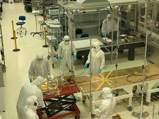 Technicians inside the Payload Hazardous Servicing Facility at NASA’s Kennedy Space Center in Florida monitor movement and guide the agency’s…