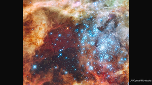 The Hubble Space Telescope captured this image of the massive young stellar grouping R136. The cluster of stars resides in…