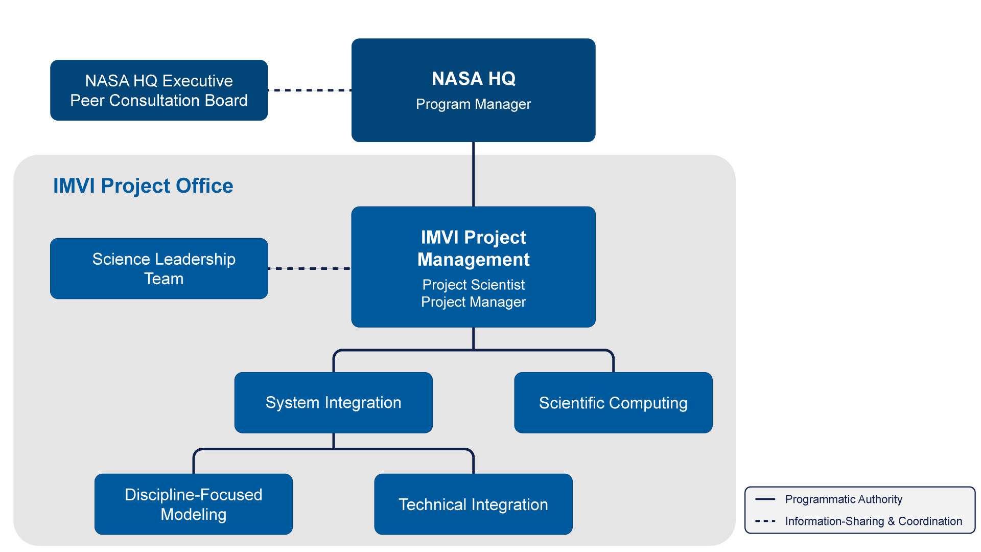 Initially, IMVI prioritizes the coordination of activities and complementary strengths across core capabilities, including process models (such as land, atmosphere, ocean, and ice), global Earth system models, and scientific computing. By further building upon NASA's unique leadership in advanced analysis and predictions of the Earth system, IMVI accelerates scientific discovery, drives technological innovation, and maximizes benefits for stakeholders and the public.