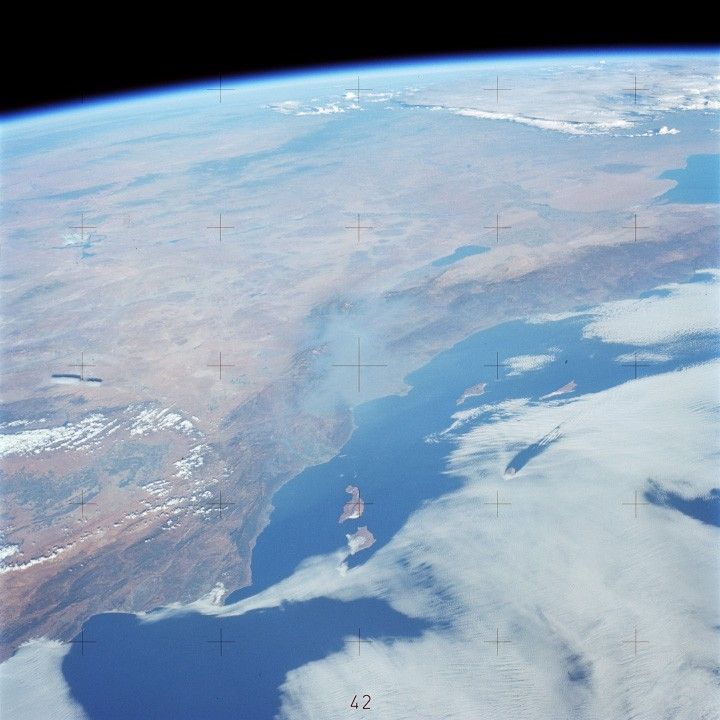 For some astronauts, that thin blue line has appeared quite vulnerable. Many have noticed palls of haze lingering over parts of the world, the result of millions of tiny particles drifting in the atmosphere. Aerosol particles, which can be either liquid or solid, obstruct sunlight and cause distinct and vibrant features to blend into a hazy, featureless mélange of gray.