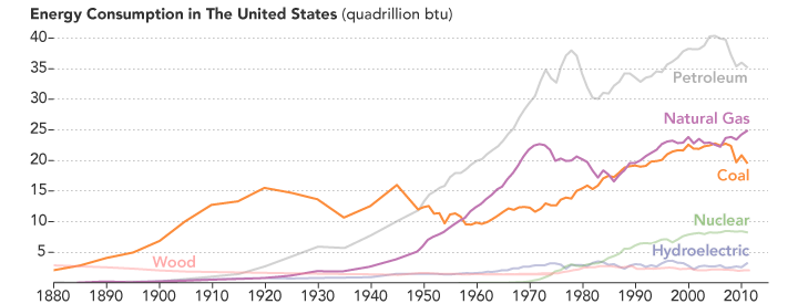 Since 2006, the contribution of coal to the U.S. energy portfolio has fallen rapidly as the consumption of energy from natural gas has increased, according to data collected by the U.S. Energy Information Agency. In April 2015, natural gas surpassed coal as the primary source of electricity (not including heating) in the United States.