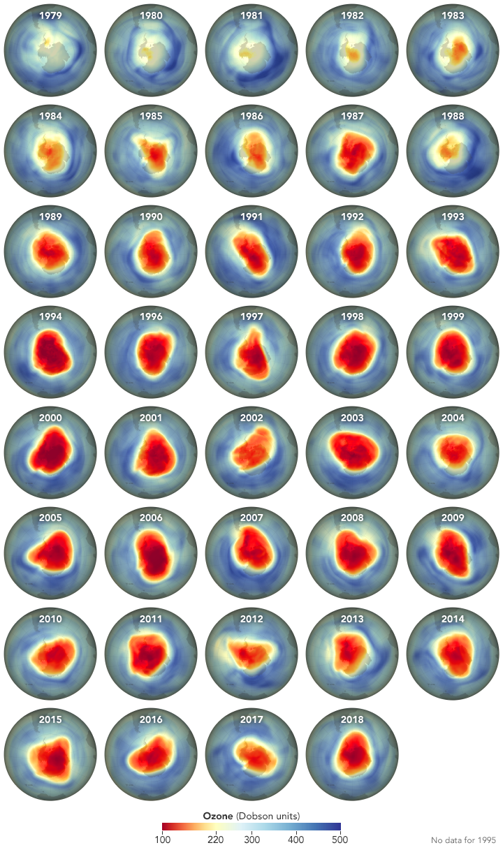 - NASA Earth Observatory (2012, September 18) Watching the Ozone Hole Before and After the Montreal Protocol.